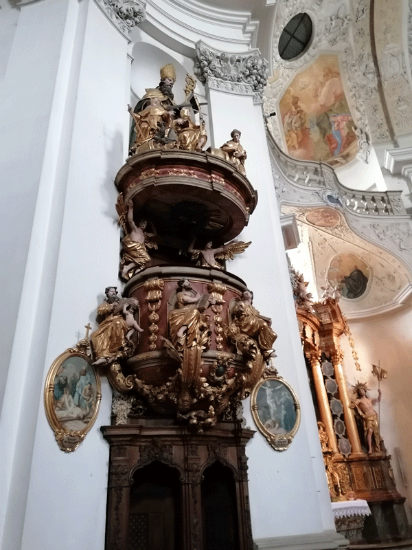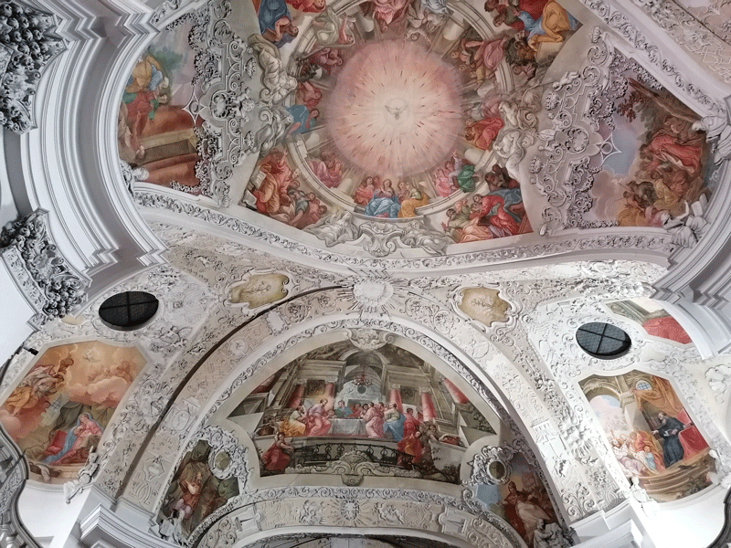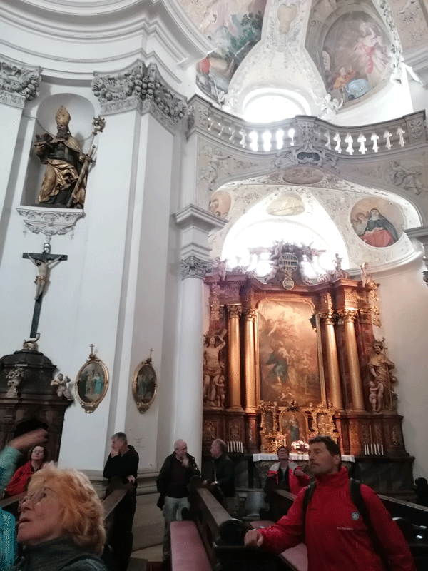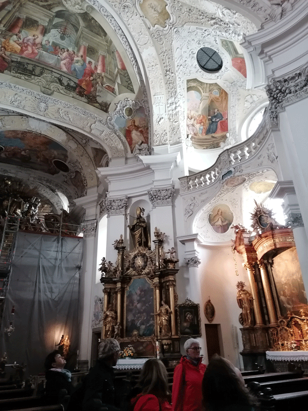 Nun ging es auf die Zielgerade und unser Bus erwartete uns schon am Treffpunkt in Bad Staffelstein. Nach einer kurzen Fahrt empfing uns das Kloster Banz. Eine Führerin erzählte anschaulich die Geschichte des Klosters und der Klosterkirche.
