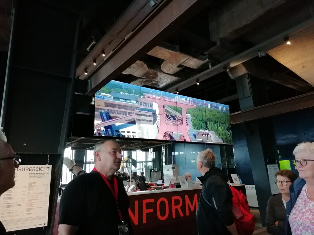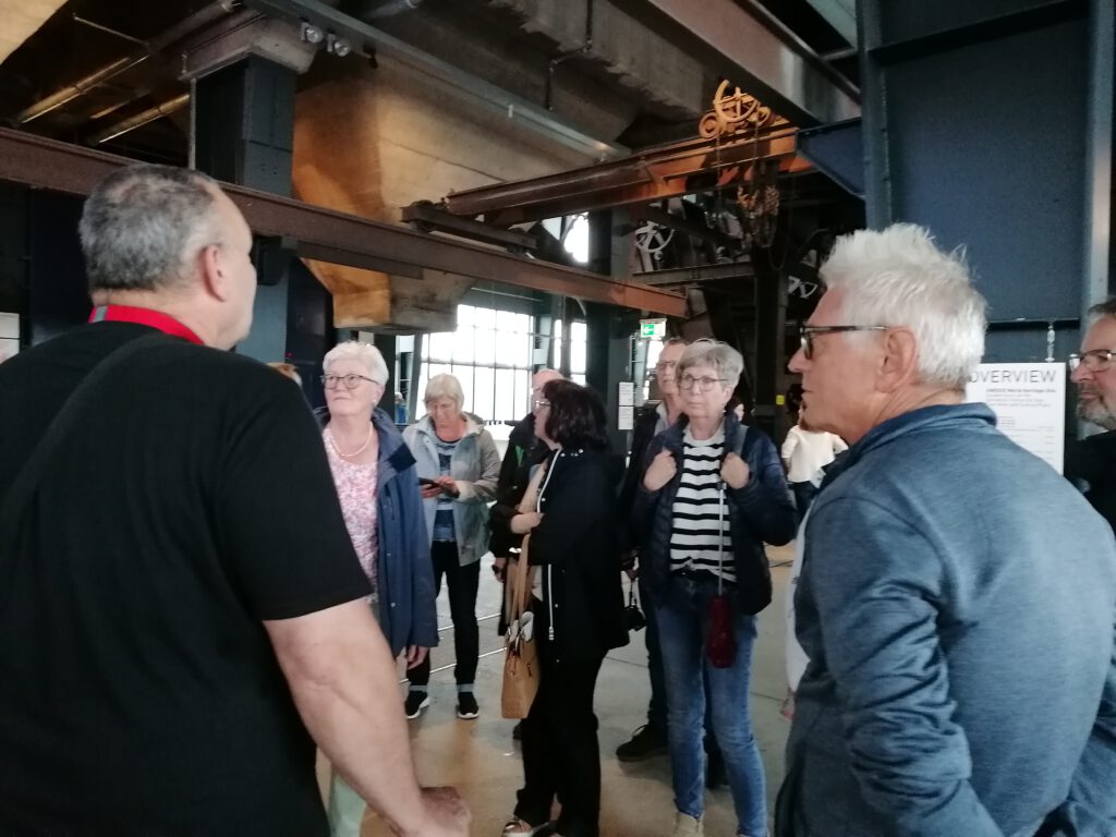 Nächstes Ziel war zunächst eine alte Kokerei und danach die Zeche Zollverein, zwischenzeitlich Weltkulturerbe. Ein ehemaliger Bergmann konnte uns sehr anschaulich berichten wie die Arbeit in einer Zeche unter Tage aussah. Für viel Kumpels war das schwere Arbeit, die die Aussicht auf einen langen Ruhestand eher in Frage stellte.